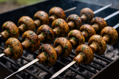 Шампиньоны на мангале идеально сочетаются с мясом, курицей, рыбой или овощами гриль. Их можно подавать как отдельное блюдо с соусами — например, с чесночным или сметанным.