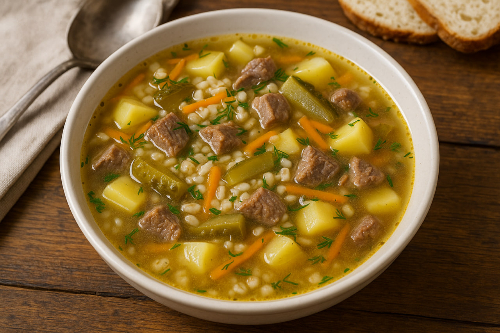 Рассольник с перловкой и солёными огурцами — это блюдо, которое объединяет простоту и насыщенность. Оно согревает, утоляет голод и возвращает вкус детства. Попробуйте приготовить его дома, и ваш стол наполнится ароматом настоящей русской кухни.